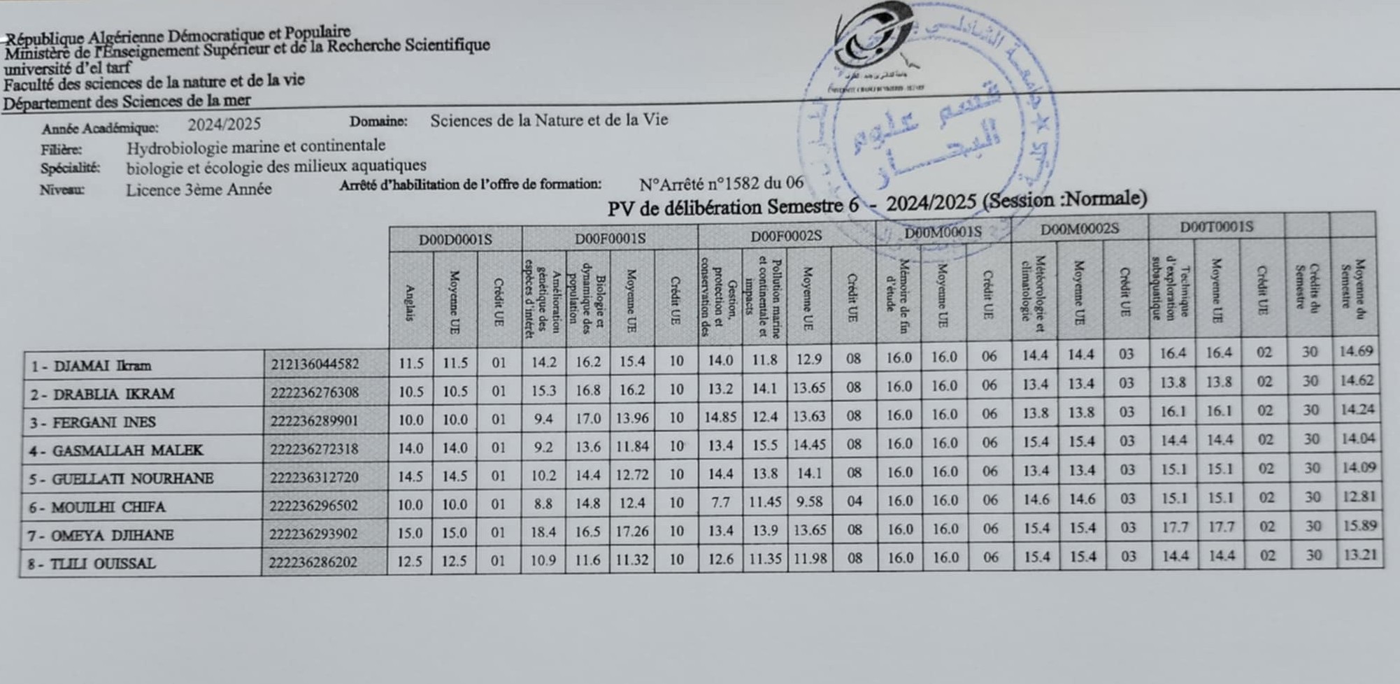 Délibération S6 - Biologie et Ecologie 24/25