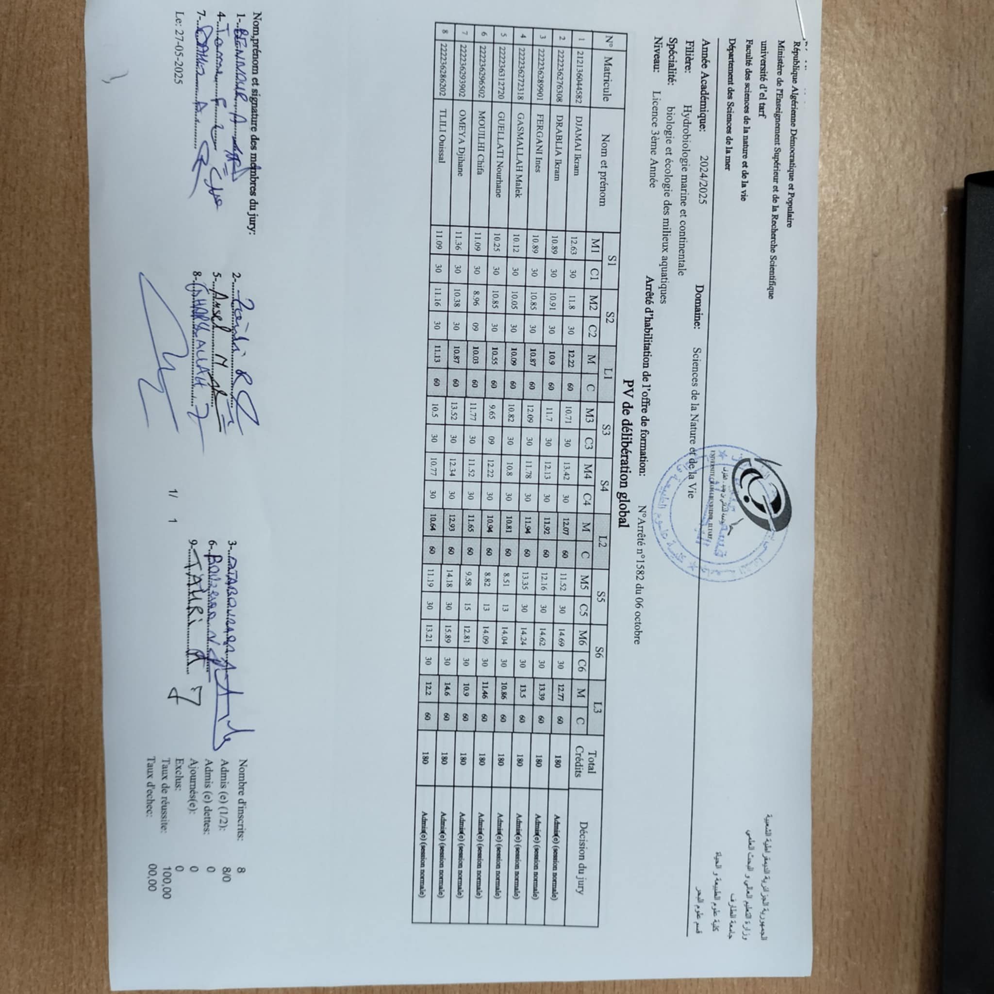 Délibération CURSUS Biologie et Ecologie 24/25